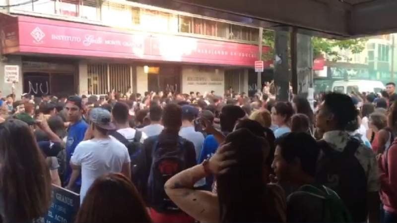 Sin embargo, los chicos y chicas se movilizaron hasta el Instituto Grilli, ubicado en Vicente López al 246, donde ocuparon toda la calle y realizaron cantos insultando a la institución.