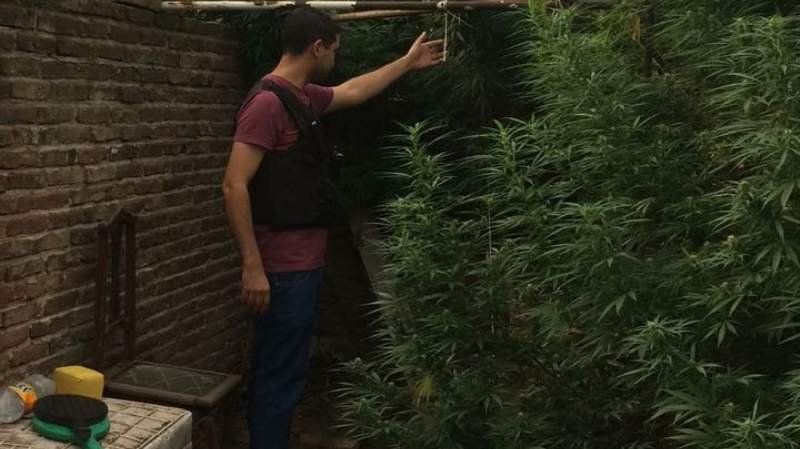 Una vez que se inició la requisa de la vivienda, en el fondo de la misma se logró observar la existencia de quince plantas de Cannabis Sativa, que arrojaron diámetros de 3.20 metros de altura por 3.90 metros de ancho, todas ellas con sus cogollos a la vista.