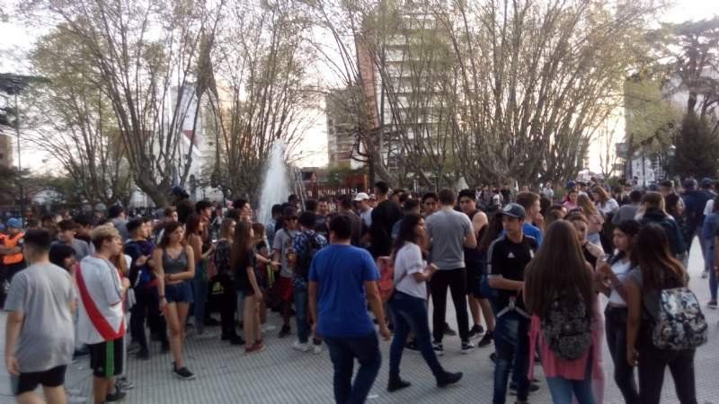 En la última hora, la Plaza Mitre comenzó a llenarse de jóvenes que festejan el 21 de septiembre. La mayoría son adolescentes aunque, a diferencia de otros años, también hay familias que se instalaron a tomar mate o algún refresco.