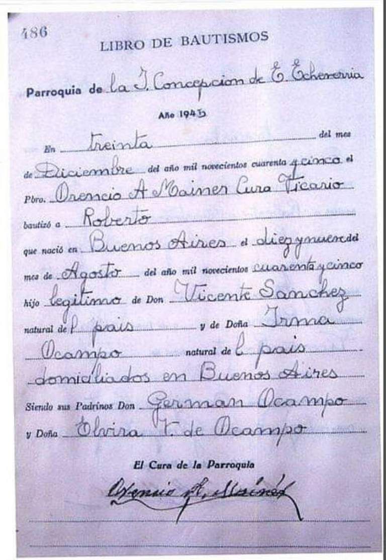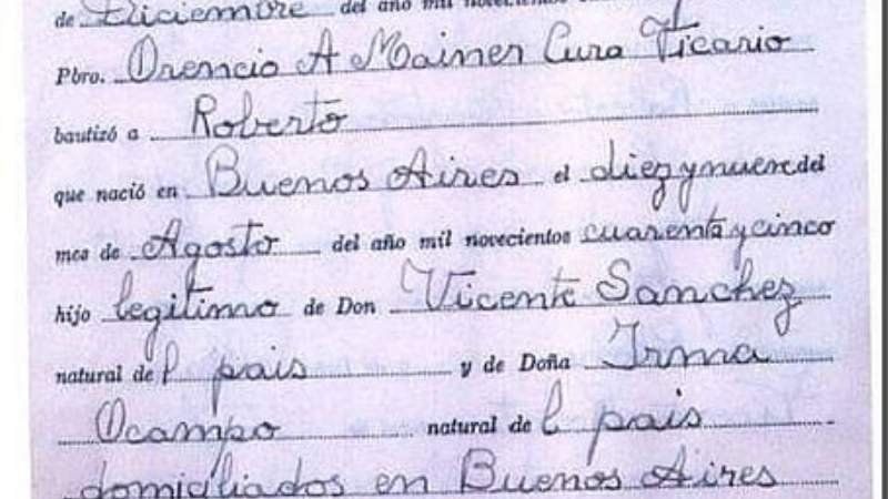 Resulta que El Gitano, como también se lo llamaba, fue bautizado en la Parroquia Inmaculada Concepción de Monte Grande, la principal iglesia del distrito. La ceremonia fue llevada a cabo por el padre Mainer el 30 de diciembre de 1945, cuando Sandro tenía tan solo cuatro meses de edad.