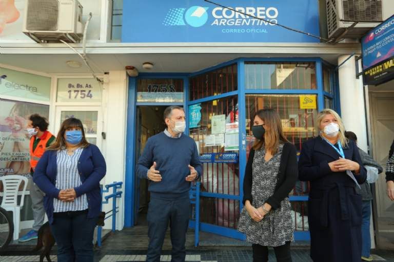 Junto a la gerenta de Relaciones Institucionales de Correo Argentino, Constanza Navas, y la jefa de sucursal Luis Guillón, Verónica Sotelo, Gray destacó también el trabajo coordinado con el gobierno nacional, el gobierno provincial, Anses y el Correo Argentino, que atiende a mucha más gente en este contexto.