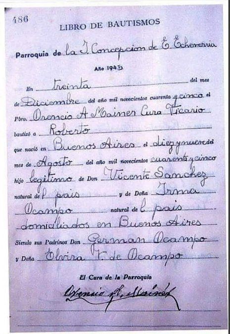 Resulta que El Gitano, como también se lo llamaba, fue bautizado en la Parroquia Inmaculada Concepción de Monte Grande, la principal iglesia del distrito. La ceremonia fue llevada a cabo por el padre Mainer el 30 de diciembre de 1945, cuando Sandro tenía tan solo cuatro meses de edad.