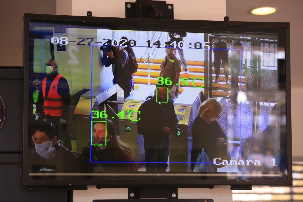 Así, a través de una cámara termográfica de alta eficiencia, se realiza el monitoreo de la temperatura corporal de quienes circulan por la estación, y esos valores se reflejan en dos monitores dispuestos en el lugar, que son controlados por personal municipal.