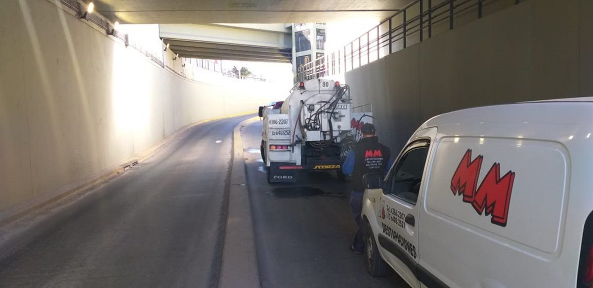 El segundo grupo, personal de alumbrado y barrido de la Municipalidad de Ezeiza, despeja las hojas que se acumulan en todo el trayecto del bajo nivel, ubicado sobre la continuación de la Ruta 58, a metros del hipermercado y la rotonda de Canning.