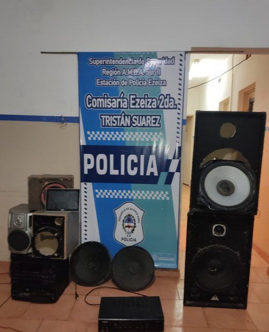 De esta manera, la Policía Bonaerense de Ezeiza logró esclarecer el robo, así como también incautar y recuperar dos parlantes marca Play Bag, un amplificador marca Ciclos, modelo AV-509 y dos Subwoofer una tablet sin marca y modelo, un equipo de música sin marca visible.