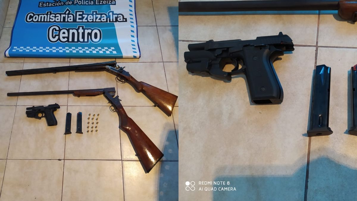 De esta manera, la Policía Bonaerense de Ezeiza llevó a cabo el procedimiento e incautó armas de fuego que estaban guardadas en el interior de la casa del acusado: dos escopetas calibre 16 y una pistola Taurus con 15 municiones y dos cargadores. Ninguna de ellas con pedido de captura.