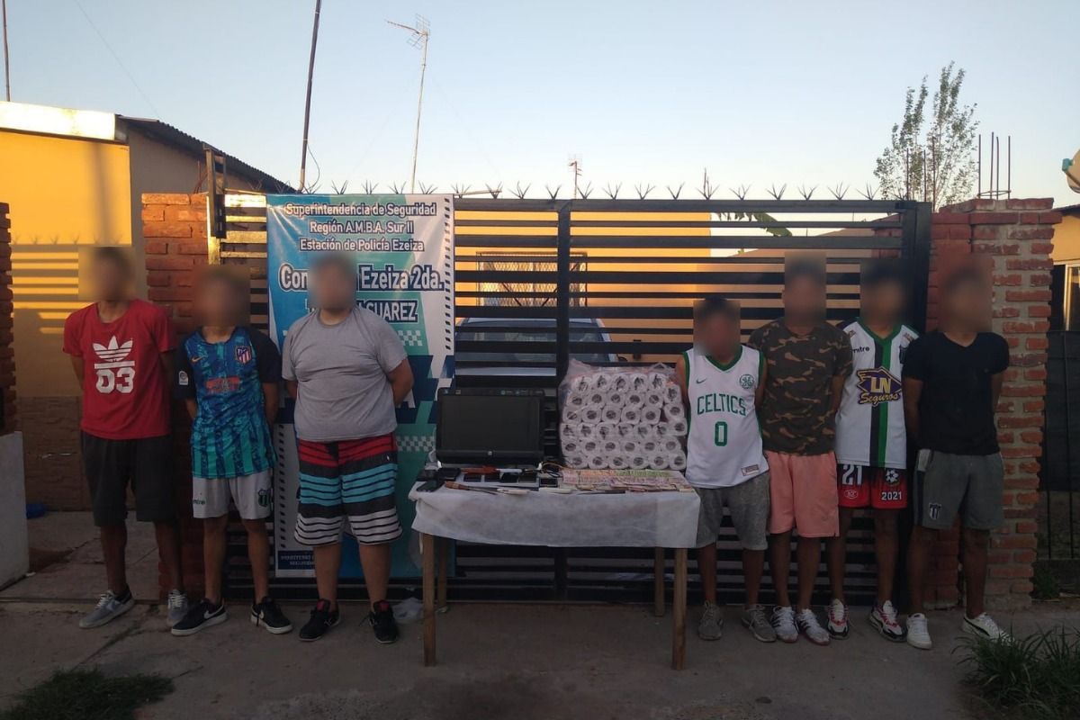 La policía de Ezeiza detuvo a 8 personas por robar un comercio. El local atacado está ubicado frente a la casa donde viven los delincuentes y que fue allanada por orden de la Justicia. Se habían llevado dinero en efectivo, una computadora y papel higiénico.