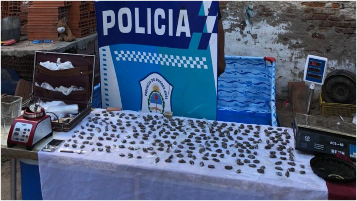 La Policía Bonaerense desarticuló el accionar de una banda que se dedicaba a la venta de droga en Ezeiza. La asociación ilícita utilizaba maletines para guardar y transportar grandes cantidades de marihuana fraccionada en envoltorios, pero cayeron tras una larga investigación.