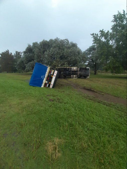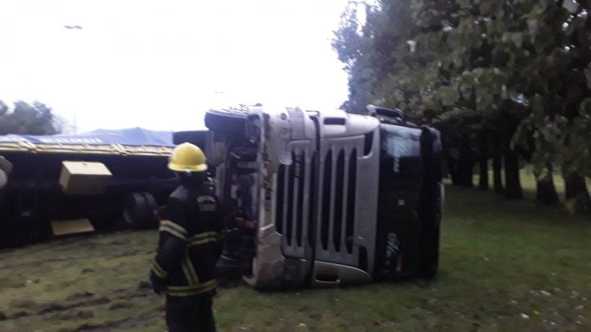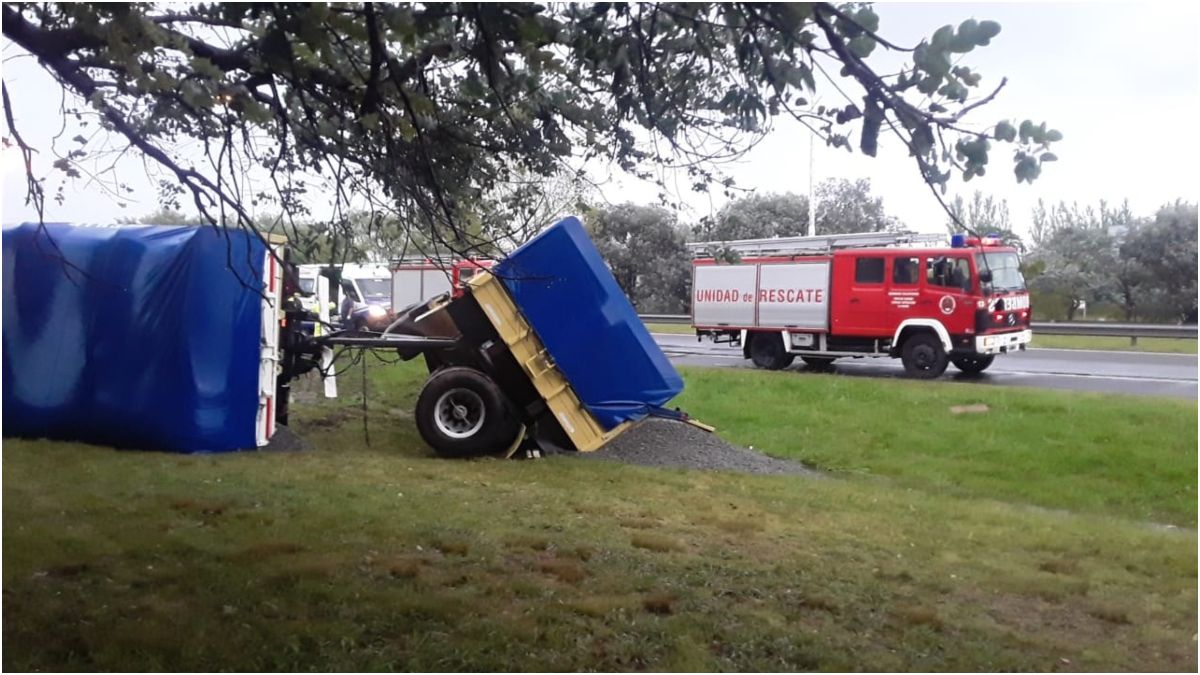 La autopista Ezeiza-Cañuelas volvió a ser noticia por un nuevo accidente ocurrido en medio de la lluvia torrencial de este lunes. En esta oportunidad, un choque entre un camión y un vehículo produjo que al acoplado volcara sobre la colectora y que su conductor fuera trasladado al hospital.