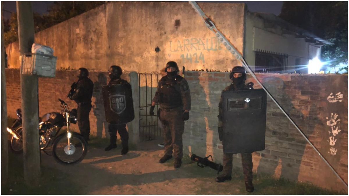 Luego de recopilar datos y pruebas, personal policial del Grupo GAD y GTO de la Comisaría 1ra de Ezeiza establecieron la presunta ubicación del búnker de drogas y allanaron un domicilio ubicado sobre Larralde al 1400. Allí, descubrieron e incautaron gran cantidad de cocaína, marihuana, revólver calibre 32 y distintos elementos para fragmentar la droga y luego comercializarla, según precisaron las mismas fuentes.