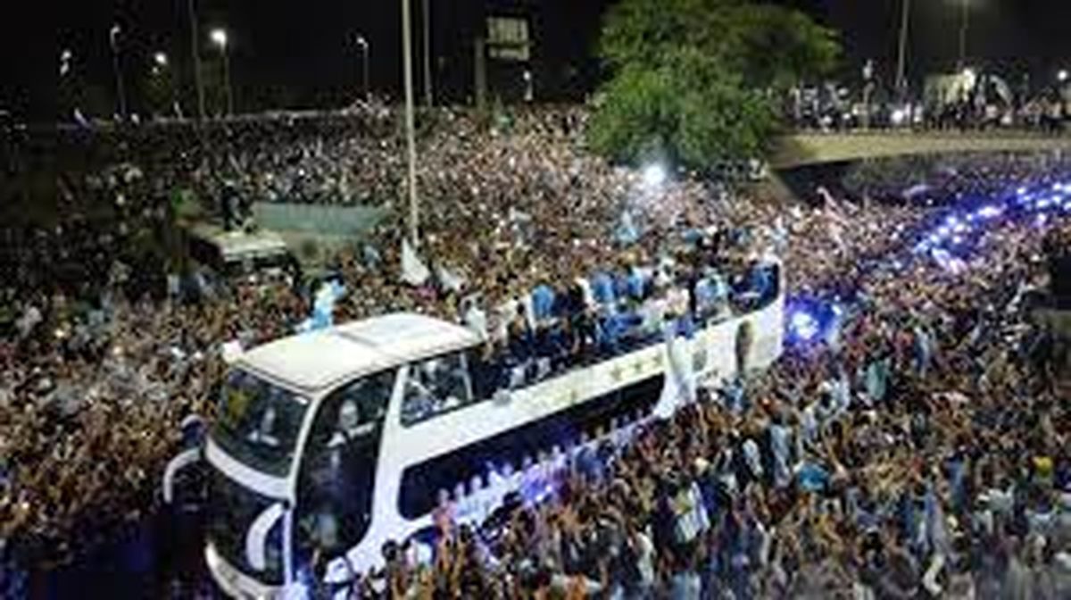 El arribo de los jugadores fue saludado por la interpretación en vivo, a cargo del grupo musical La Mosca, del tema que se convirtió en himno de los hinchas albicelestes en el Mundial, "Muchachos, ahora nos volvimos a ilusionar", que acompañó el descenso de los futbolistas, del cuerpo técnico y de los dirigentes del avión.
