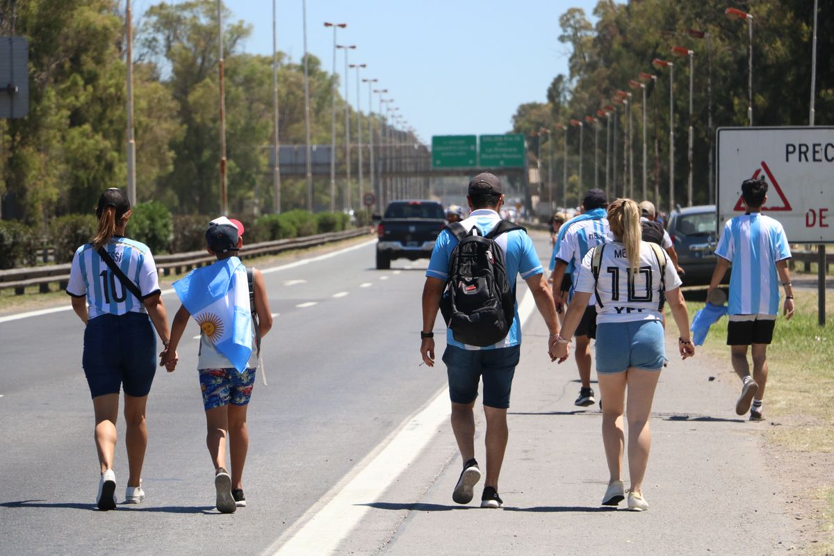 Estela es una vecina de Esteban Echeverría que se dirigía junto a su hija y nieto al predio de la AFA en Ezeiza y tras esperar cerca de media hora para poder avanzar unos metros con su vehículo, aparecieron los problemas técnicos. “Se llenó de vapor el capot y tuvimos que parar”, contó en diálogo con El Diario Sur desde el lugar. “Mi hija y mi nieto se fueron caminando por la autopista y yo me quedé a esperar al seguro que también está colapsado. Me lo perdí, pero todo sea por los nietos, la Selección y Scaloni que lo amo”, completó.