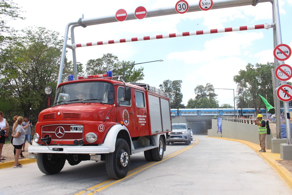 Para habilitar el paso bajo nivel, circularon por él varios patrulleros de la policía, una autobomba de los Bomberos y dos colectivos llenos de vecinos. Además, una vez realizado el pasaje de un lado a otro de la obra, algunas personas decidieron tirar espuma para celebrar su finalización, que se espera desde el 2013.