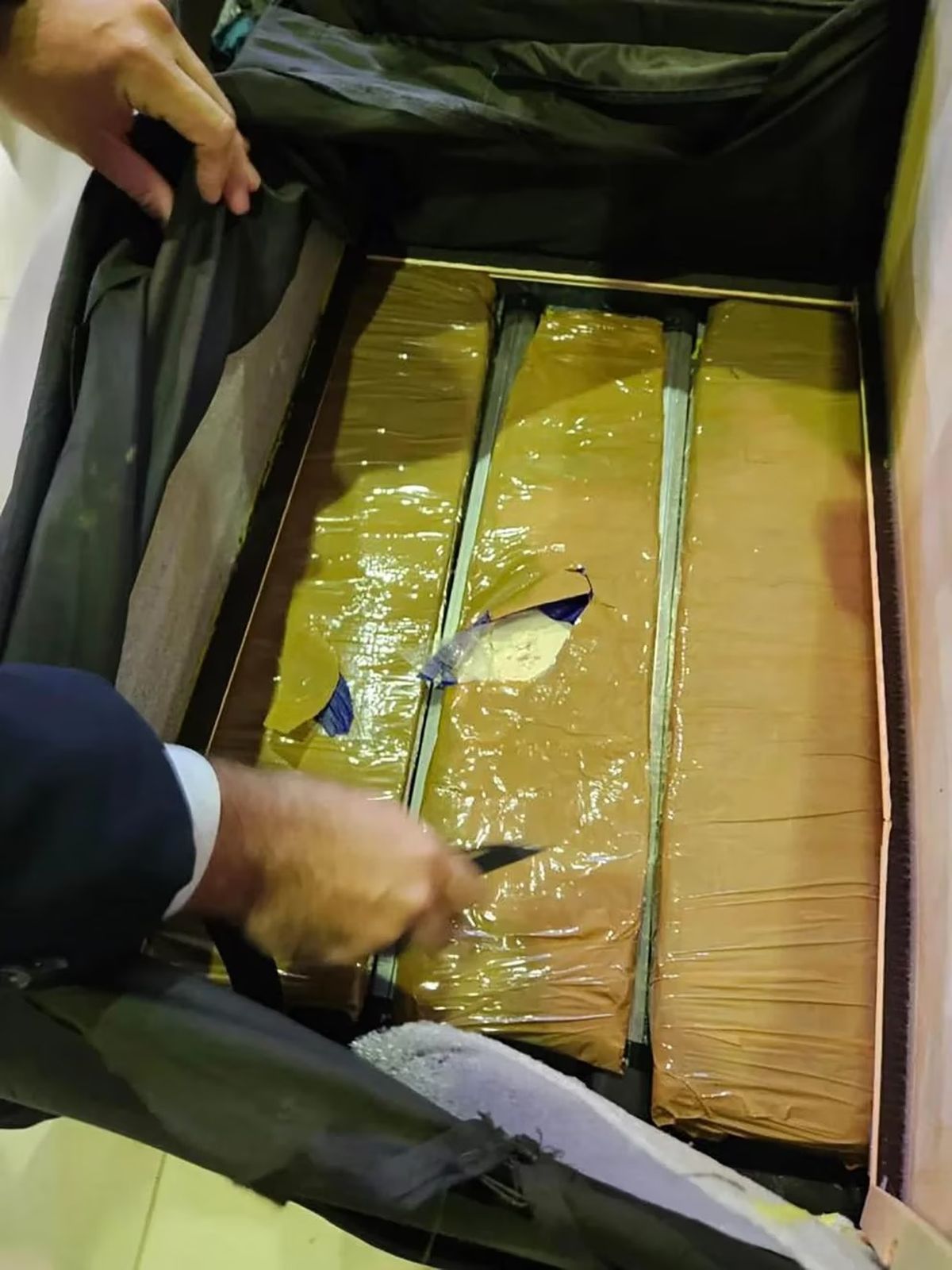 El operativo de detección comenzó cuando la máquina de Rayos X devolvió imágenes sospechosas a los inspectores de la Aduana quiénes, rápidamente, decidieron hacer una inspección exhaustiva del pasajero y de los bultos que traía consigo.