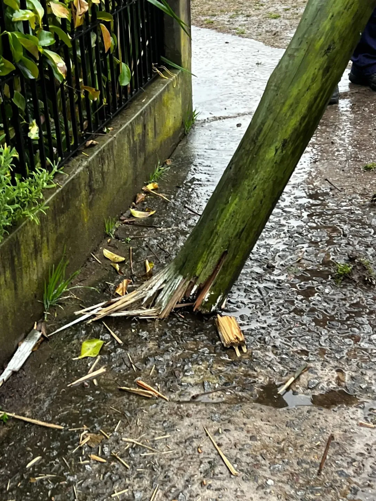 El temporal, que se extiende desde ayer, también tuvo como consecuencia la voladura de varias de las palmeras que se habían colocado durante la última semana sobre el cantero central de la Ruta 58 desde la Shell en el cruce de la Ruta 6 hasta las calles El Deslinde y Cáceres. El fuerte viento generó que varias de las plantas quedaran sobre la ruta. Más de una decena de esas palmeras colocadas fueron derribadas y personal del Municipio ya estaba trabajando para volver a levantarlas.