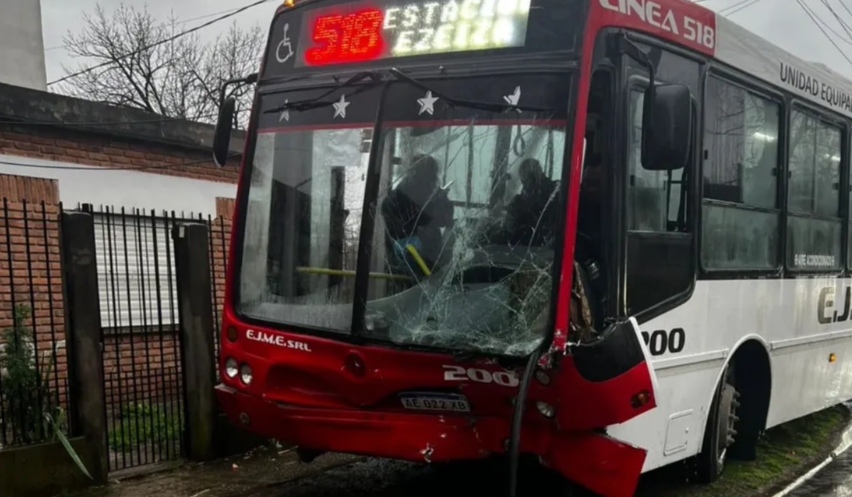 Una unidad de la línea de colectivos 518 terminó perdiendo el control y subió a la vereda en la localidad de Ezeiza luego de cruzarse con una camioneta. Afortunadamente y pese a la importancia del accidente no se registraron heridos de gravedad.