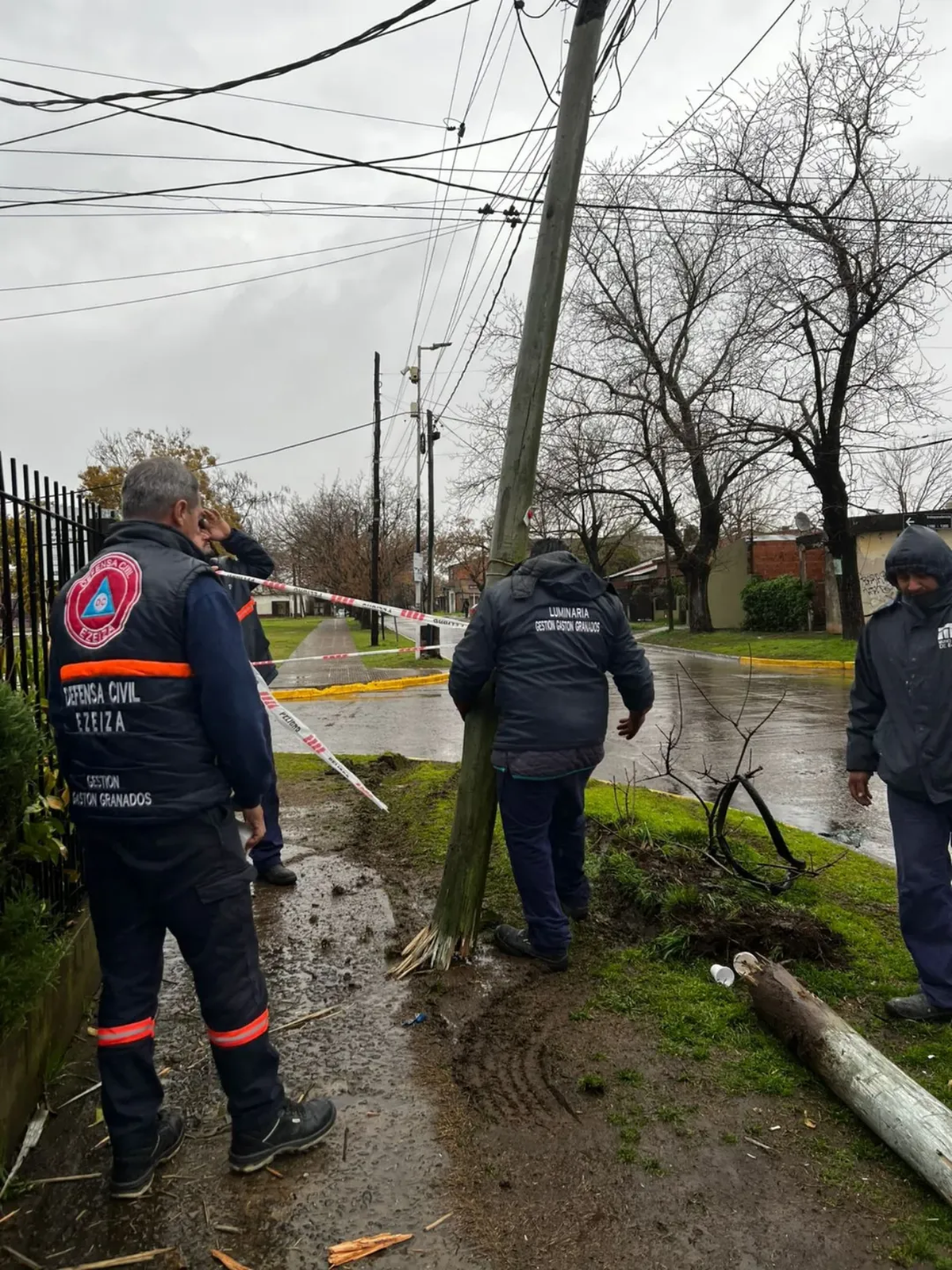 Trabajaron en el lugar personal de Defensa Civil para asistir a los daminificados y de Luminarias de Ezeiza que repararon los daños que se produjeron tras el accidente entre la unidad de la Empresa José María Ezeiza y el Jeep. Luego, operarios de Edesur colocaron un nuevo poste de luz, ya que el anterior fue arrancado por el colectivo.