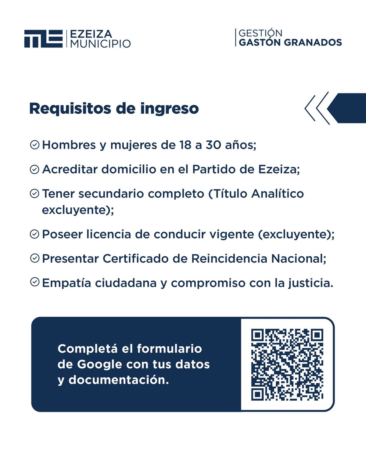 Acreditar domicilio en el partido de Ezeiza, incluyendo las localidades de Ezeiza, Canning, La Unión, Tristán Suárez o Carlos Spegazzini.