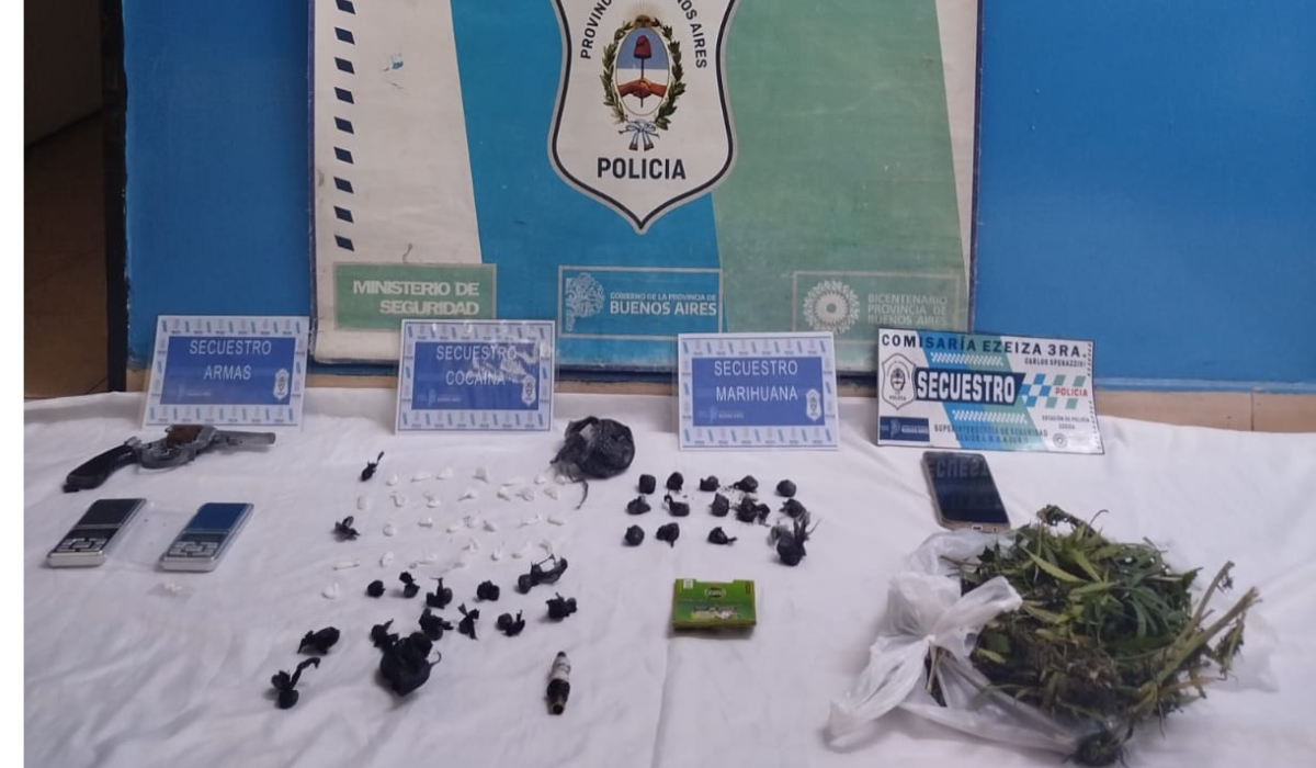 También se secuestraron un revólver calibre 38, un teléfono celular y dos balanzas de precisión. En ese lugar fue aprehendido un hombre de 34 años, quien quedó a disposición de la UFI N°4 descentralizada de Ezeiza, a cargo de la causa caratulada preventivamente como "Infracción al artículo 5to de la Ley de Estupefacientes 23.737".