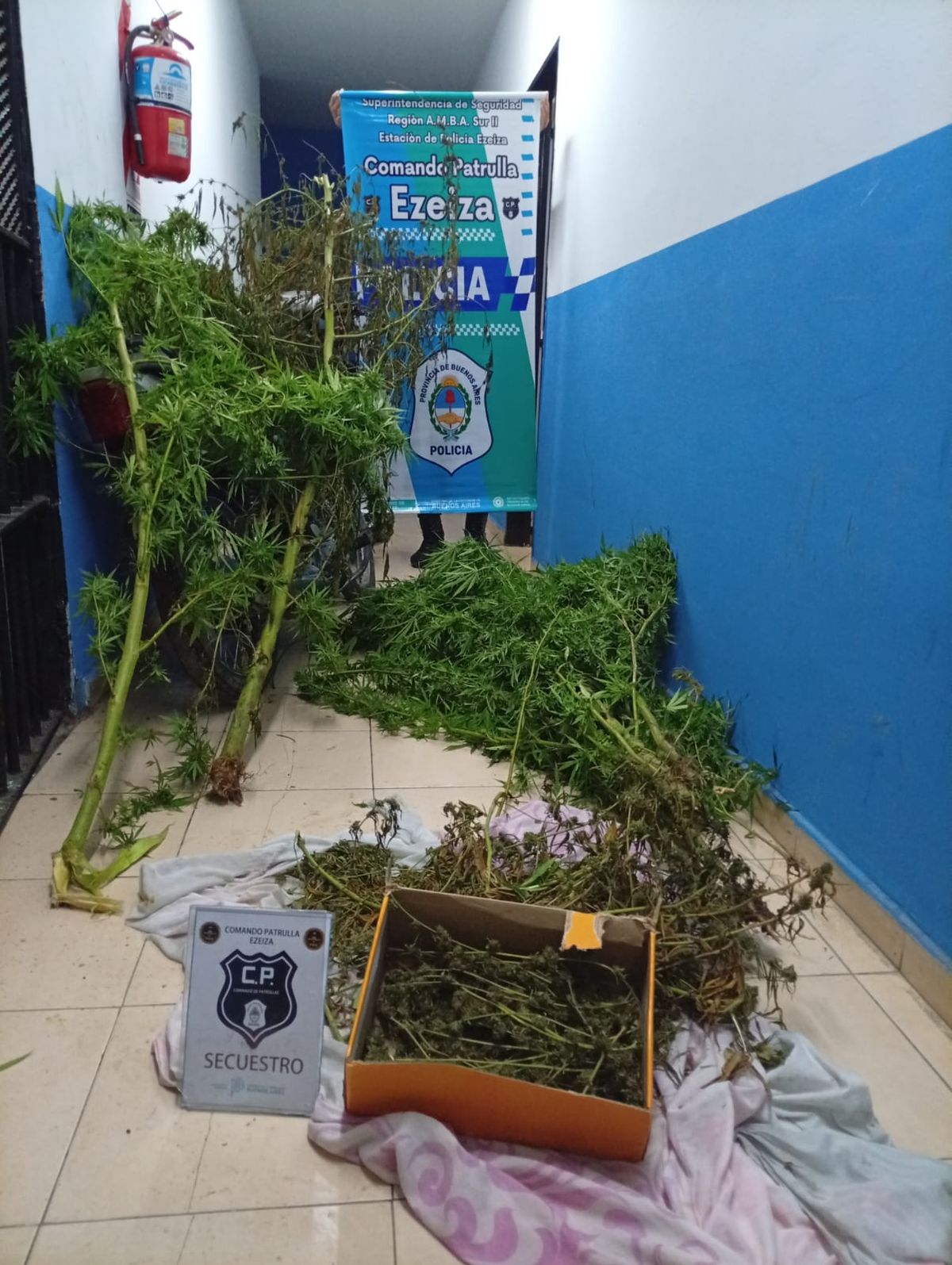 Los efectivos se trasladaron a una vivienda ubicada en Campichuelo al 100, también en Spegazzini. Allí, si bien no hallaron el vehículo presuntamente utilizado en el robo, detectaron la presencia de seis plantas de marihuana de gran tamaño y hojas en proceso de secado.
