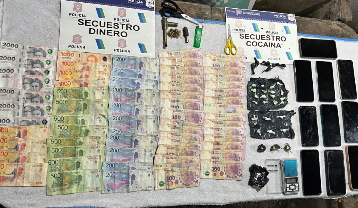 En el lugar se secuestraron 19,2 gramos de clorhidrato de cocaína distribuidos en 30 dosis listas para su comercialización, además de 1,4 gramos de marihuana compactada. También se incautaron diez teléfonos celulares y 32.500 pesos en efectivo, detallaron las fuentes.