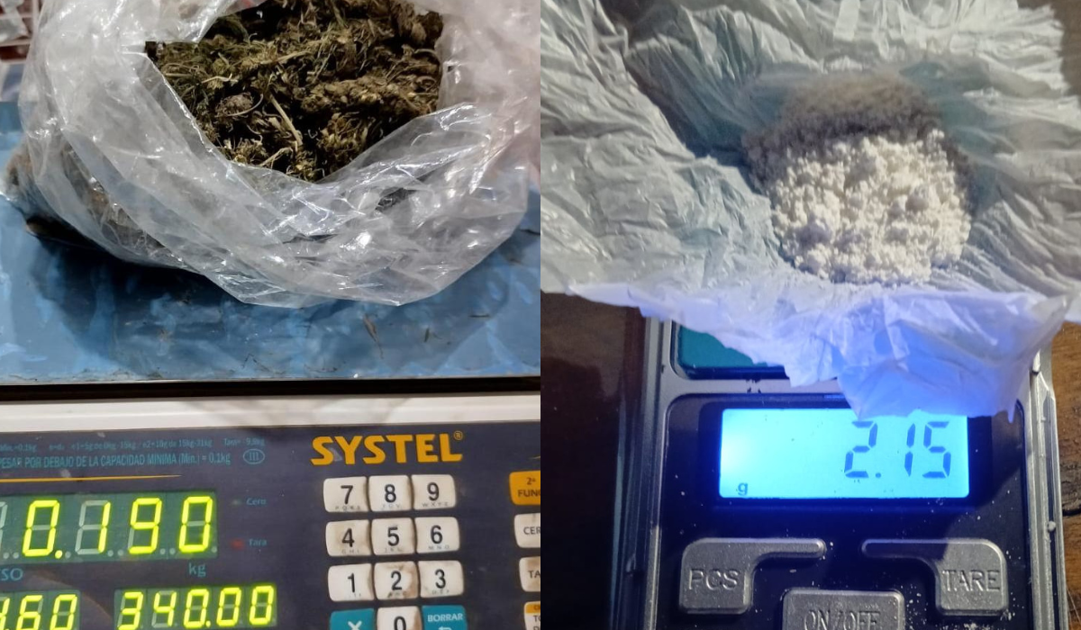 De acuerdo a los voceros policiales, en el lugar se secuestraron 24,8 gramos de cocaína distribuidos en 27 envoltorios, además de un trozo compacto y restos en polvo. También se incautaron 25,2 gramos de marihuana, dinero en efectivo por $21.570, una balanza y recortes utilizados para el fraccionamiento de la droga.