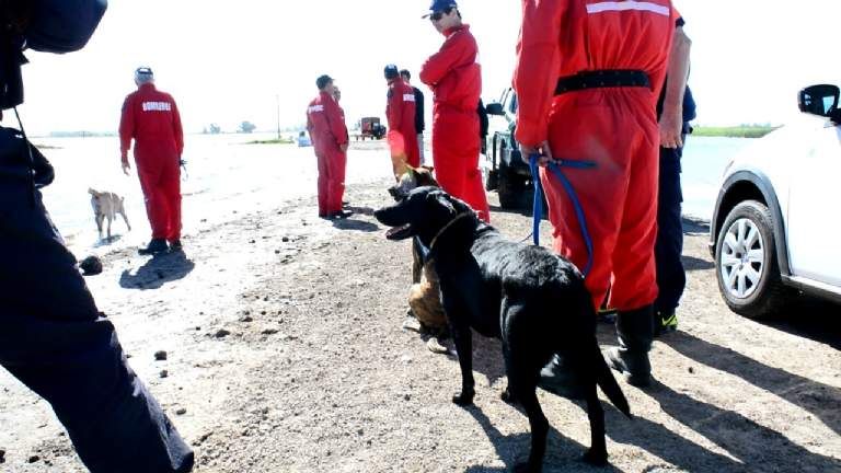 Esta mañana continuó el operativo junto a buzos, policías y bomberos de Roque Pérez, Beguerie, Del Carril y San Antonio de Areco, quienes trabajan con perros entrenados para el rescate.