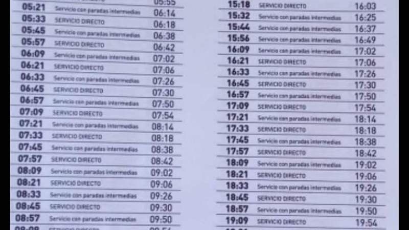 Tendrá, de manera intercalada, un servicio directo y uno que realizará todas las paradas con una frecuencia de 24 minutos entre tren y tren. El resto de la jornada los trenes funcionarán con horarios y cronogramas habituales.