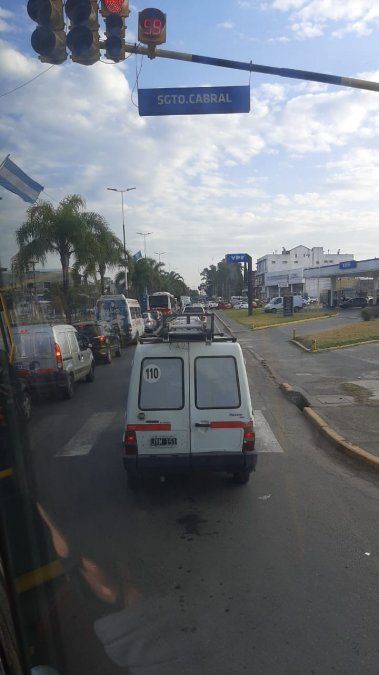 La policía frenaba a los colectivos y subía a los mismos para solicitarle a los pasajeros el permiso de circulación para personal esencial mediante la aplicación “CUIDAR” habilitada por el Gobierno Nacional. “Al que no tenía la habilitación lo bajaban del colectivo”, explicó uno de los choferes que transitó por allí.