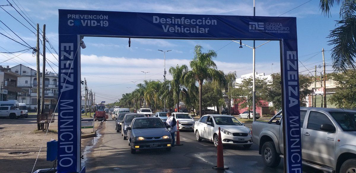 Controlan a todos los vehículos y transportes públicos previo a ingresar a Ezeiza. La fila de autos llegó hasta la rotonda del hipermercado de Cannnig