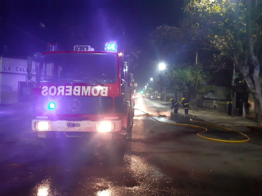 La jornada para los bomberos comenzó en los primeros minutos del sábado, cuando dos voluntarios a bordo del móvil 10 se desplazaron hasta la intersección de las calles Gaddini y Los Naranjos en Tristán Suárez, para apagar un incendio de cubiertas. El fuego habría sido causado por vecinos, como señal de protesta frente a los reiterados cortes de luz.