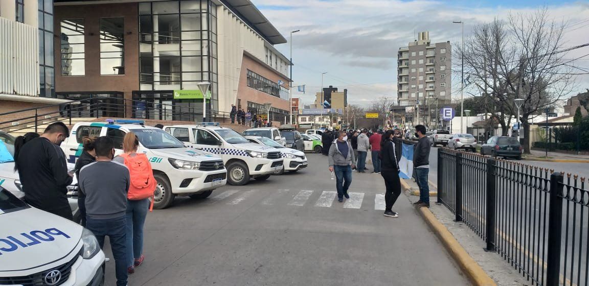 Las masivas protestas de la Policía Bonaerense tienen desde la tarde de este martes su eco en Ezeiza, donde hay 37 móviles con más de 150 efectivos llevando adelante una manifestación en la intersección de las calles Avellaneda y Presidente Perón, frente al Municipio.