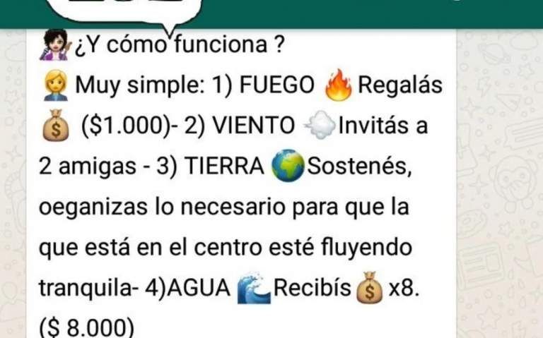 Casi un siglo después vuelve El telar de la abundancia, donde a través de grupos sociales y comunitarios o incluso por WhatsApp los estafadores apelan a la sororidad para invertir y poder adquirir una mayor independencia económica. Expertos aseguran que a pesar de que en un principio parezca atractivo, todo terminará en un inevitable fraude.