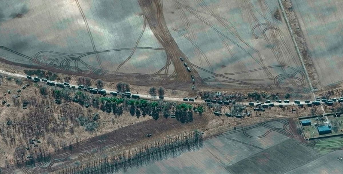 Las imágenes de satélite captaron una columna de 64 kilómetros de vehículos y artillería de Rusia que se desplazaba en dirección de Kiev, en Ucrania.
