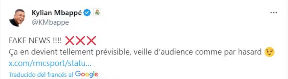 El jugador del Real Madrid fue acusado de un presunto abuso sexual en la capital de Suecia, Estocolmo. Kylian Mbappé respondió contundente en X.