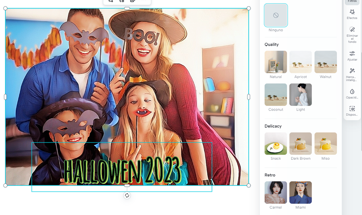 - Utiliza el “Eliminador de fondos” para quitar el fondo y hacerlo transparente. Ahora agrega elementos atrás o coloca otro tipo de fondo.