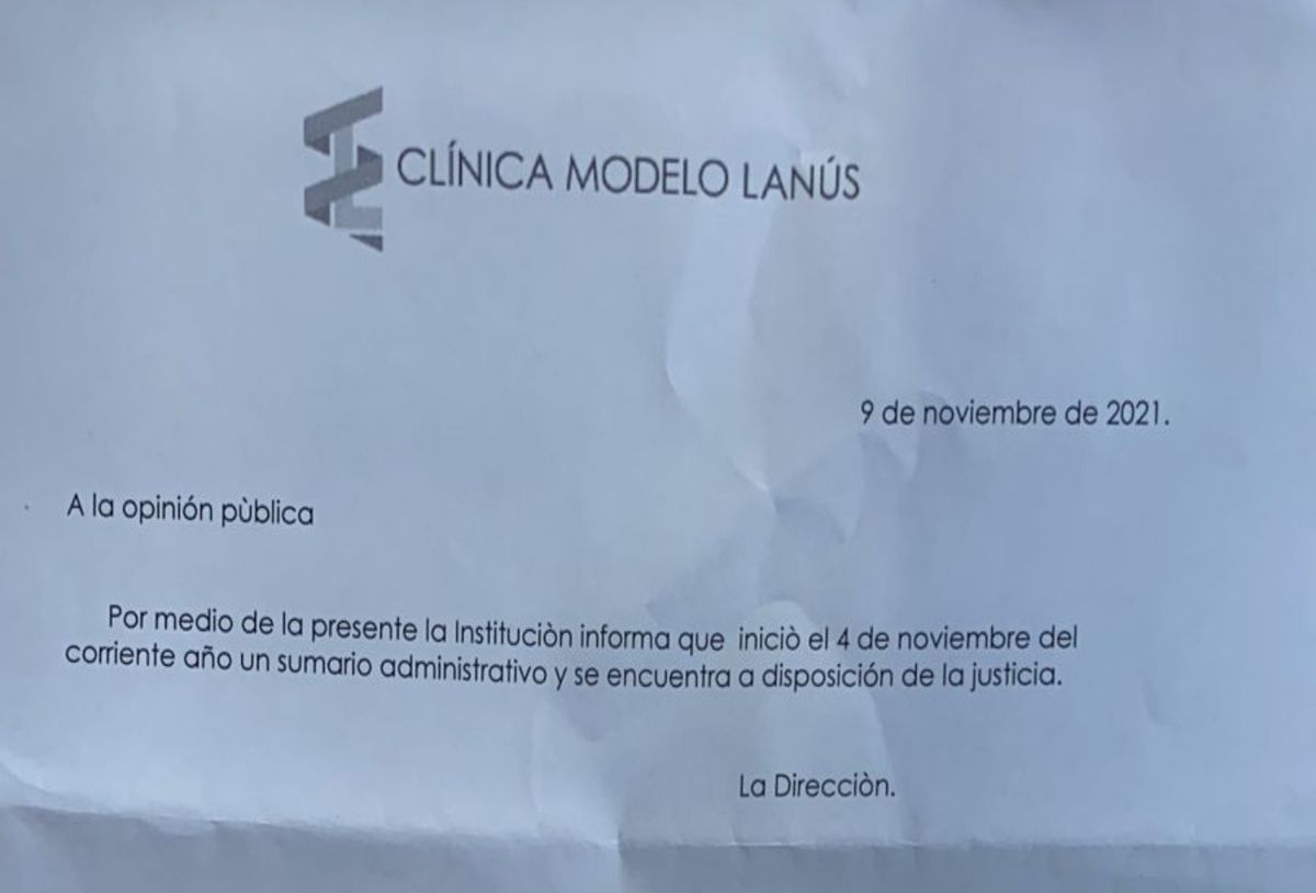 En las últimas horas el departamento de prensa de la clínica comunicó: “Por medio de la presente la institución informa que inició el 4 de noviembre del corriente año un sumario administrativo y se encuentra a disposición de la justicia”. Por lo que, de esta forma se deja en claro que comenzó una investigación interna contra la acusada y que la justicia se encuentra averiguando lo sucedido.