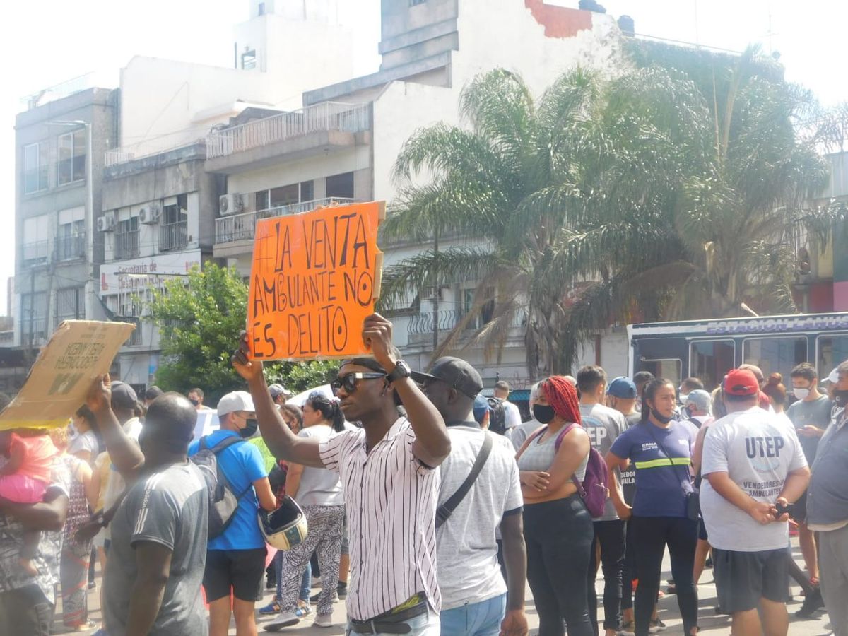 Pasadas las 11:00hs, los manteros senegaleses se movilizaron hacia la puerta del palacio municipal exigiendo que los dejen vender sus productos en la peatonal 9 de Julio y las calles laterales. Un delegado de los manifestantes aseguró a El Diario Sur que “esta época del año, cercana a la fiesta, es cuando más trabajan”.