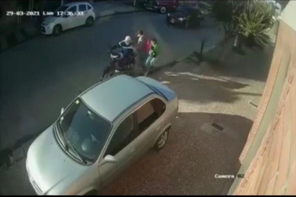 El asalto ocurrió el lunes alrededor de las 17 horas y se suma a la ola de robos que está viviendo el distrito. En la filmación se puede ver que la mujer intenta sujetar sus pertenencias hasta último momento, incluso en la calle cuando la moto arrancó. Tras cometer el robo, los delincuentes se dieron a la fuga.