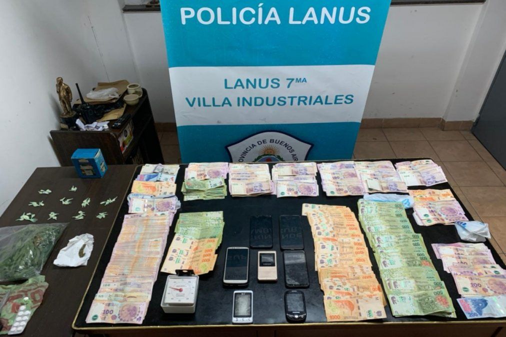 A los detenidos se les encontró elementos de corte, una balanza de precisión, una bolsa de nylon de color blanca con la suma de 48 envoltorios de color verde con 13.3 gramos de cocaína, como así también cinco teléfonos celulares, una plata de cannabis y dinero.