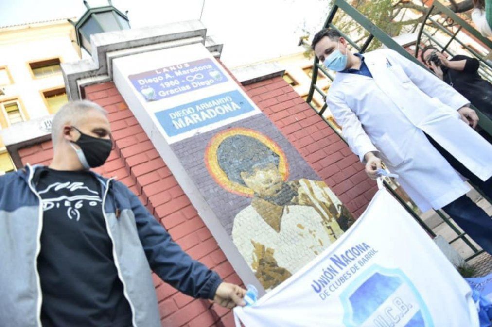 Inauguraron un mural en homenaje a Maradona en el Hospital Evita de Lanús, donde nació Diego
