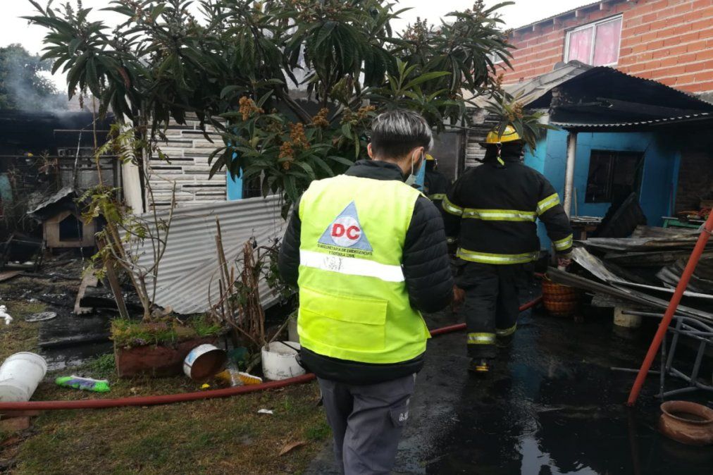 Las enormes llamas se originaron hoy al mediodía en Kloosterman y Álzaga, Monte Chingolo, donde se incendiaron tres casas prefabricadas. En total las personas damnificadas por el fuego fueron siete. De los cuales, 4 eran adultos mayores y uno de ellos tuvo que ser hospitalizado en la sala Natiello por haber sufrido quemaduras leves. Además, en las viviendas había 3 menores, incluso un bebe de tres meses.