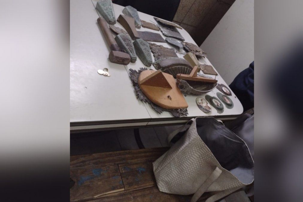 Acto seguido, el cuidador realizó la denuncia en la comisaria N° 10 de Lanús Este y los efectivos policiales se hicieron presentes en el lugar. La mujer intentó darse a la fuga pero a través de un rastrillaje por la zona, la encontraron. Cuando la revisaron, la policía encontró en su cartera había más de 10 láminas de bronce pertenecientes a las tumbas de los difuntos.