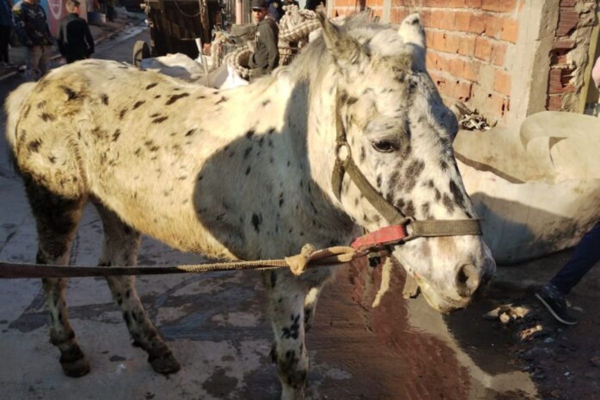La policía rescató a cuatro equinos en Monte Chingolo. Organizaciones rescatistas de animales denuncian que los animales "dormían entre la basura y su materia fecal".
