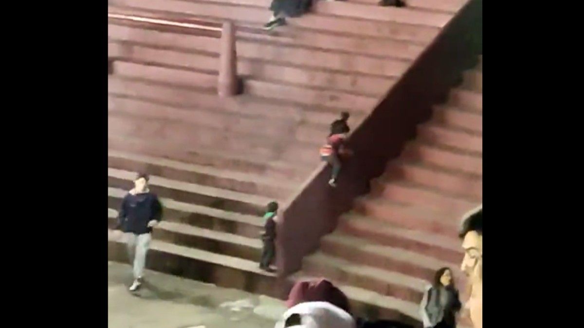 Mientras a su alrededor solo se veía gente alentando, en cierto lugar del público estaba pasando algo extraño. La escena fue capturada por un hincha presente en el estadio y subida a Twitter. En el video se ve cómo el camarógrafo decide hacer zoom a la baranda: y ahí se nota que dos cuerpos pequeños se resbalan desde arriba hasta abajo.