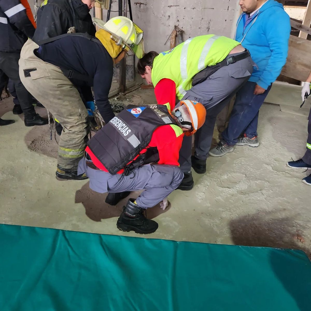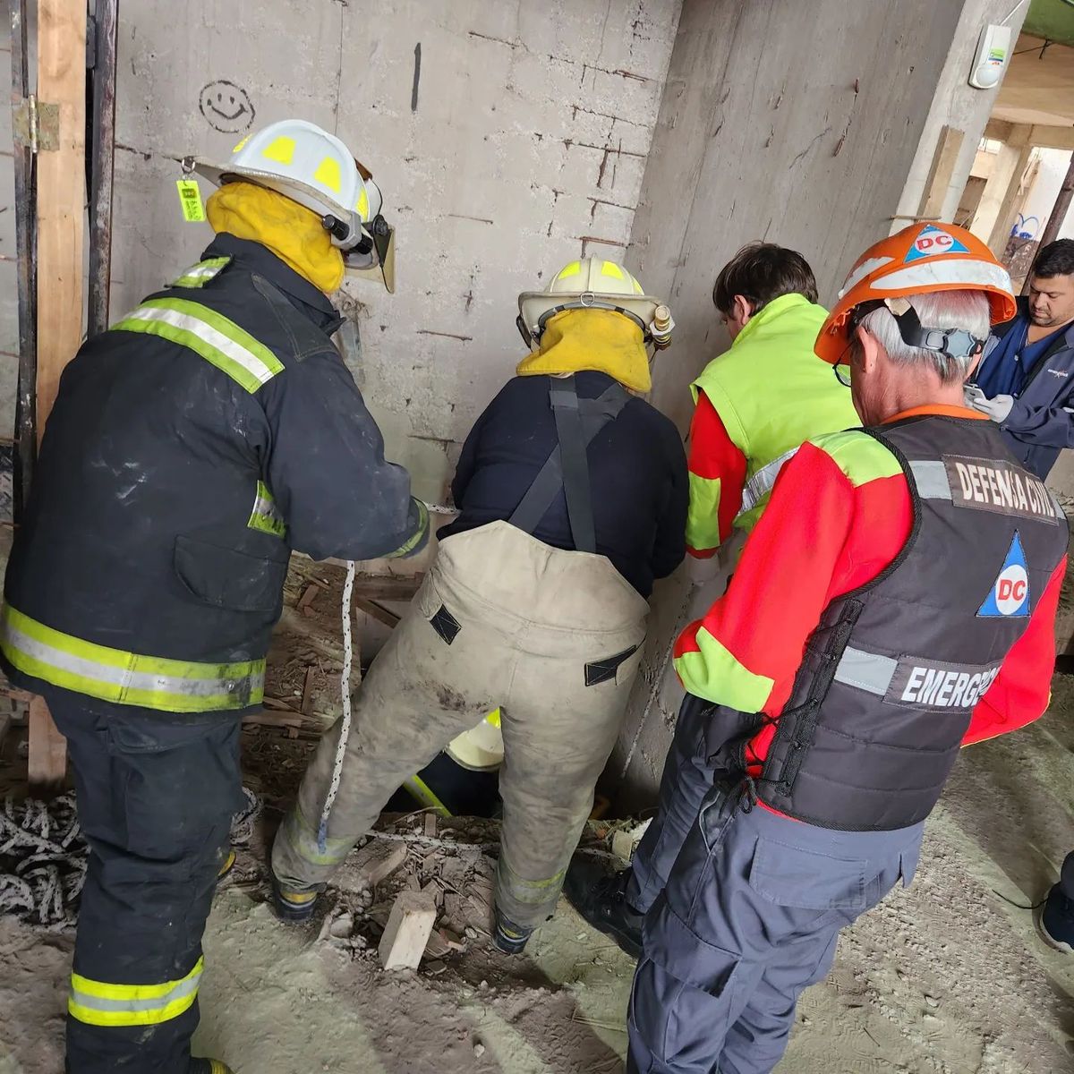 Cuando arribaron al edificio, los Bomberos Voluntarios y Defensa Civil procedieron a realizar cuidadosas maniobras para sacar al obrero -afortunadamente con vida- del hueco del ascensor, utilizando unas sogas e inmovilizando su cuello.