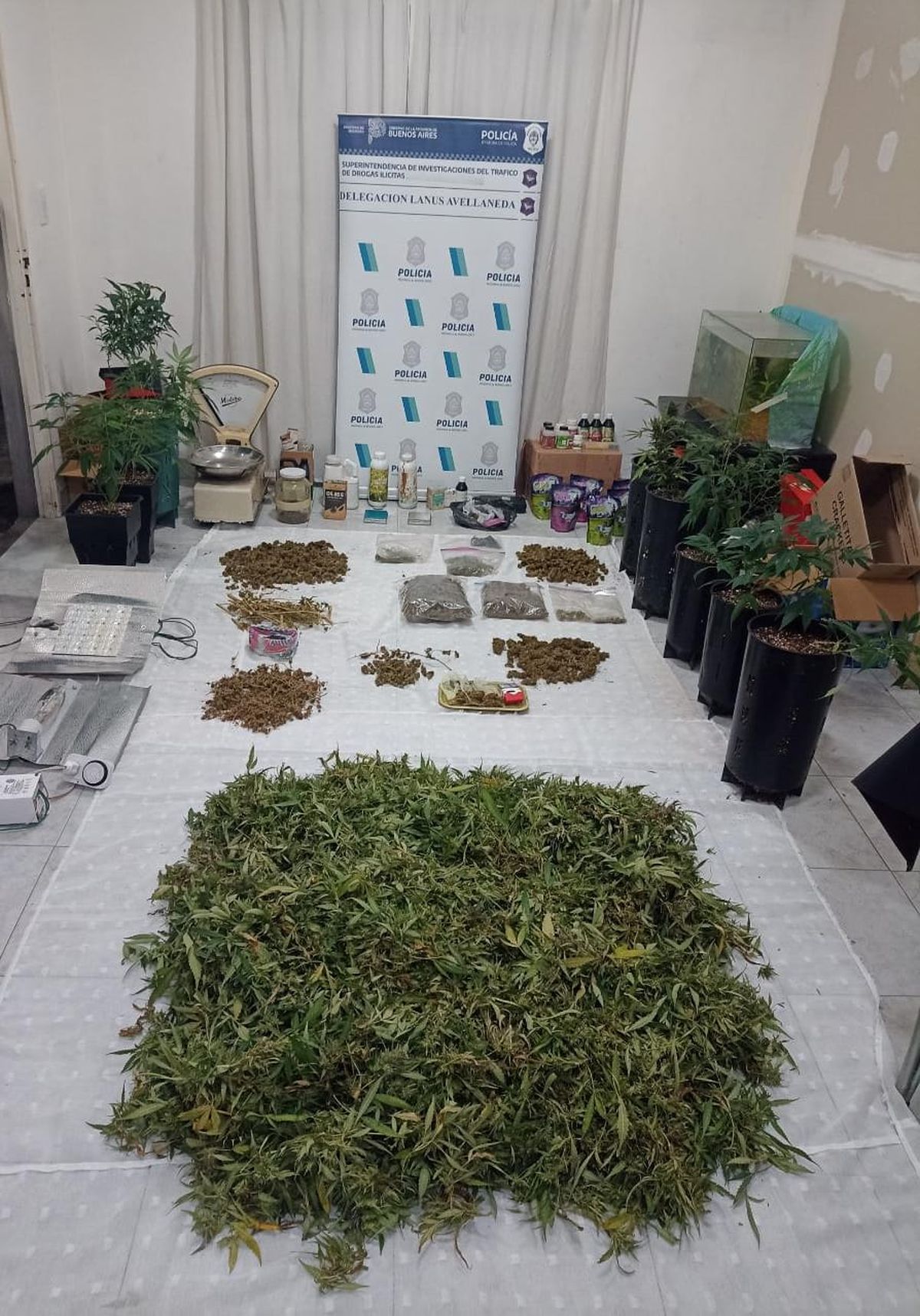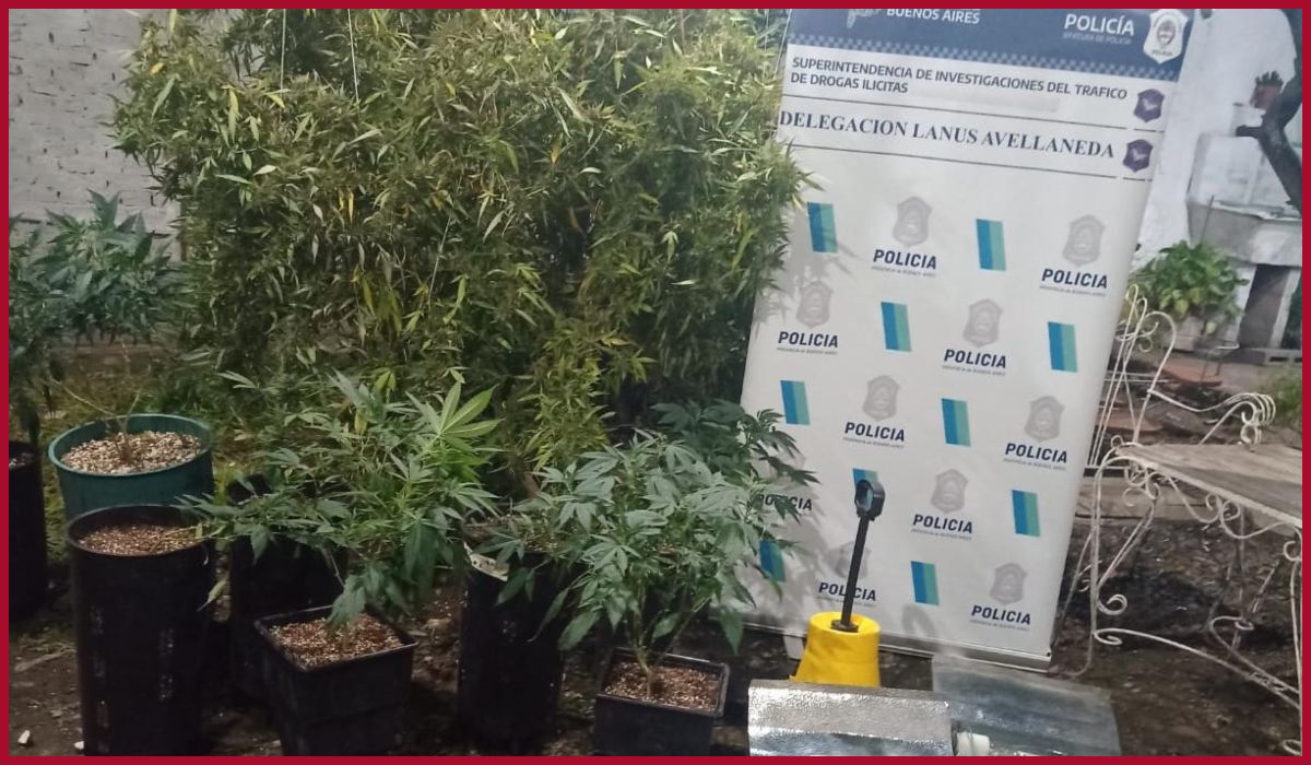 El procedimiento estuvo a cargo de la División de Drogas Ilícitas de la Policía Bonaerense de Lanús a raíz de una denuncia que aseguraba que en esa casa de Villa Caraza había movimientos compatibles con el cultivo y comercialización de droga.