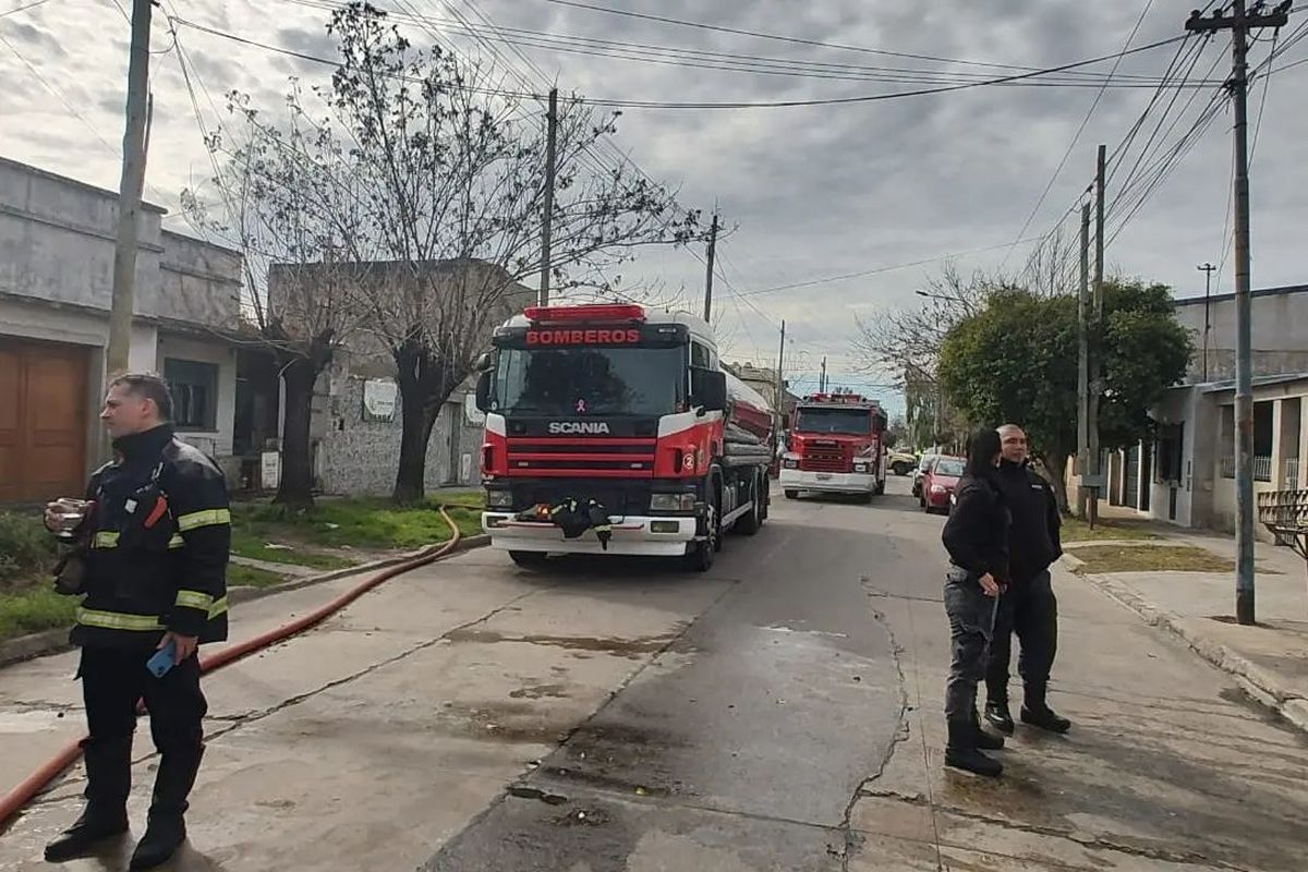 Frente al alerta por el incendio, dos dotaciones de los Bomberos Voluntarios de Lanús Oeste acudieron rápidamente al lugar para desplegar el operativo hídrico que contrarrestara el fuego que ya había generado una humareda en la cuadra.