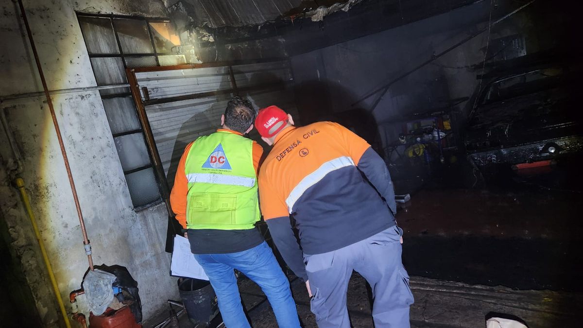 Posteriormente, personal de Defensa Civil evaluó los daños en la propiedad y detectó que el techo de tirantes y chapa había quedado con peligro de derrumbe por las intensas llamas que se produjeron y por ello solicitó que no se utilice el lugar.