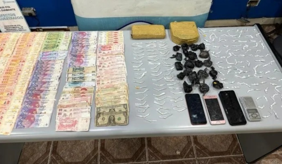 Allí los agentes secuestraron panes de marihuana, así como grandes cantidades de dosis de cocaína y pasta base, ya listas para la venta. Asimismo, fueron incautados más de 80 mil pesos en efectivo, teléfonos celulares, una balanza digital y elementos para el fraccionamiento de los estupefacientes.